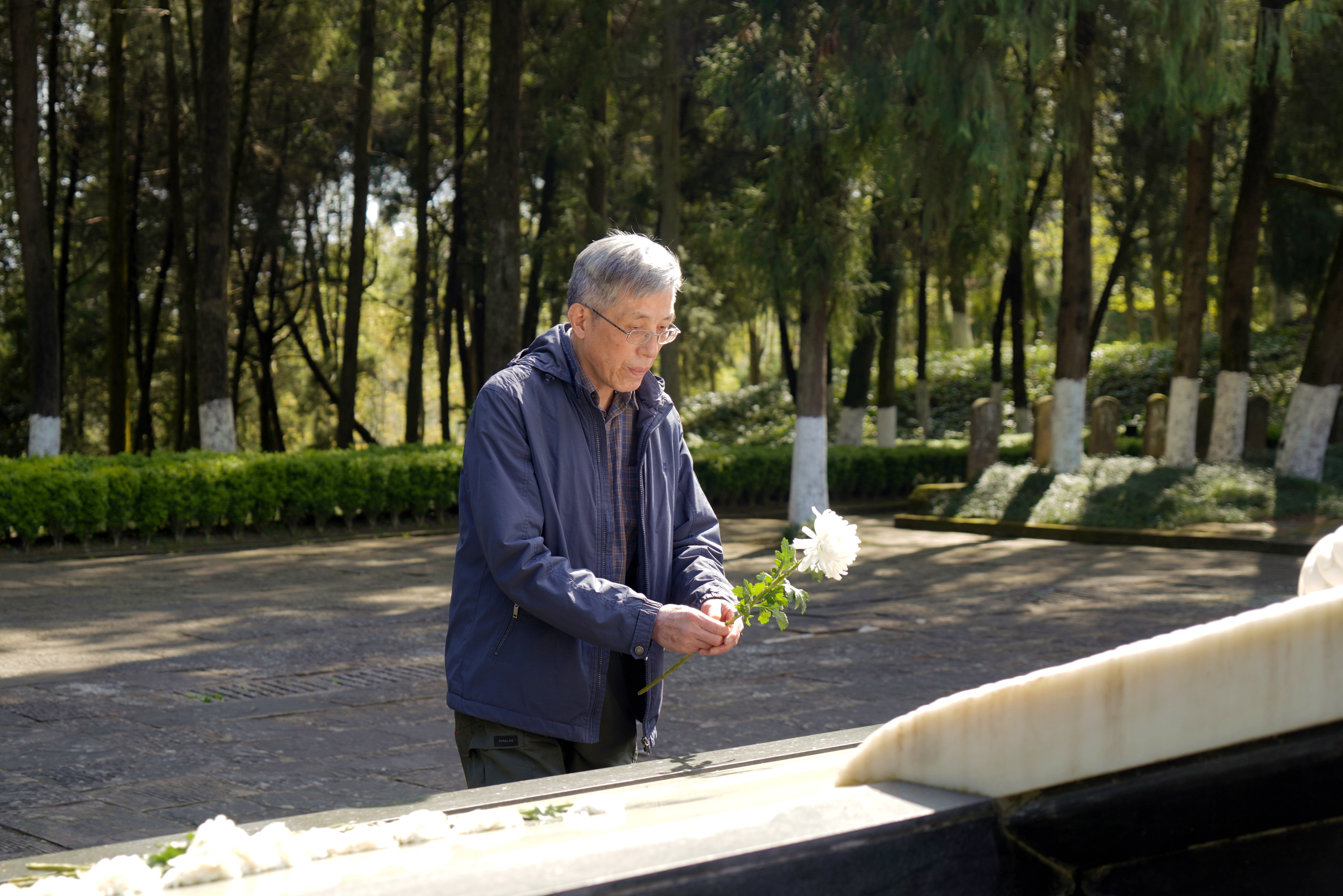 楼晓斌向革命烈士敬献菊花