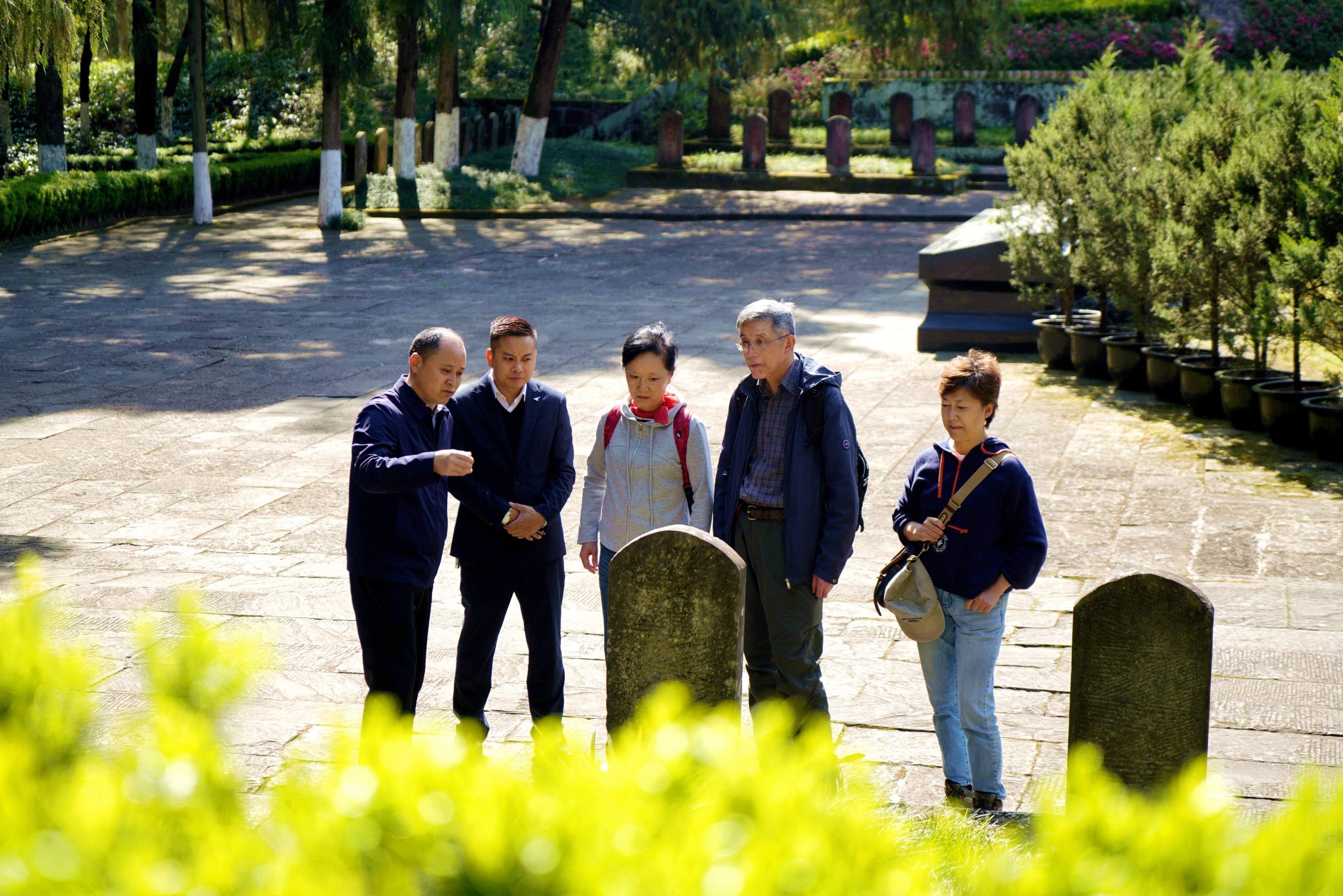 步入陵园,楼晓斌与同行好友沿着千秋大道缓步拾级而上,一路肃穆前行。在红四方面军英勇烈士墓碑前,众人肃立垂首、静默致哀;随后前往烈士集墓,献上洁白菊花,以最庄重的礼仪,向长眠于此的无数革命先烈,致以深切的缅怀与最崇高的敬意。